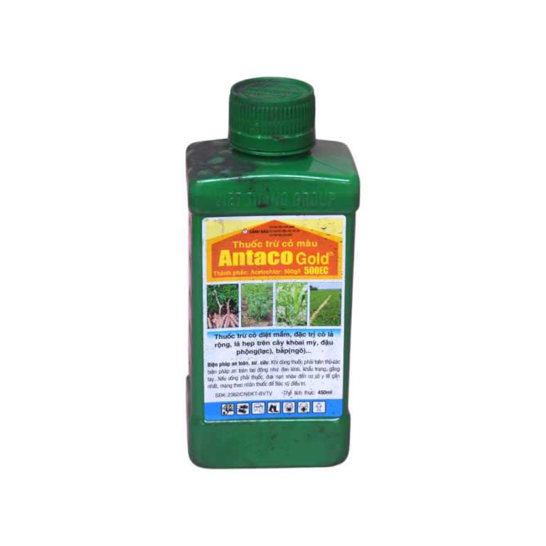 - ✓ Diệt mầm hiệu quả: Antaco Gold 500EC hoạt động ngay từ giai đoạn cỏ nảy mầm, ngăn chặn cỏ phát triển trước khi gây hại cho cây trồng.