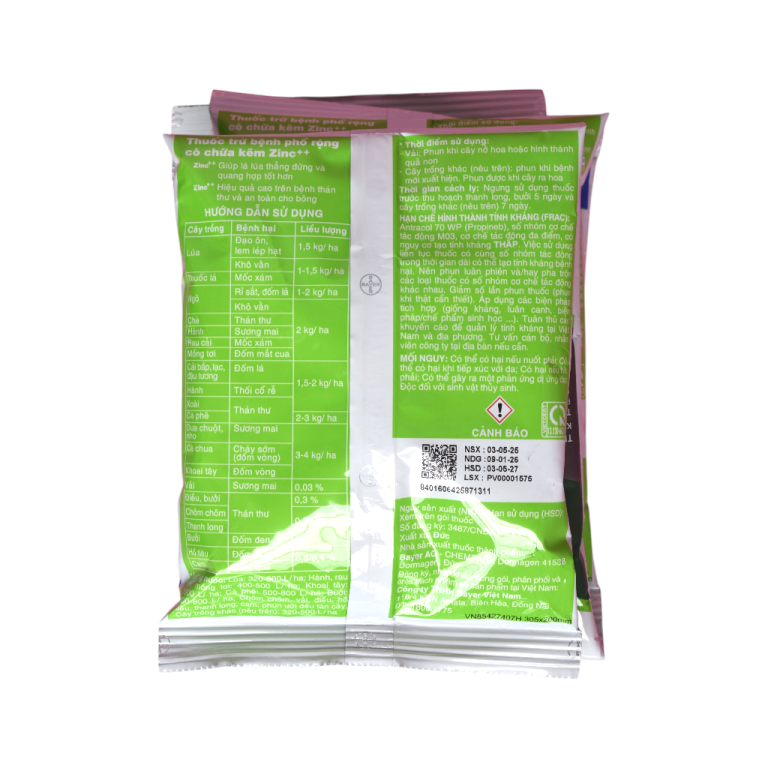 • Công nghệ Zinc+ độc đáo: Thành phần kẽm trong Propineb vừa có tác dụng diệt nấm vừa cung cấp vi lượng kẽm thiết yếu, giúp lá cây cứng cáp và tăng sức đề kháng tự nhiên.