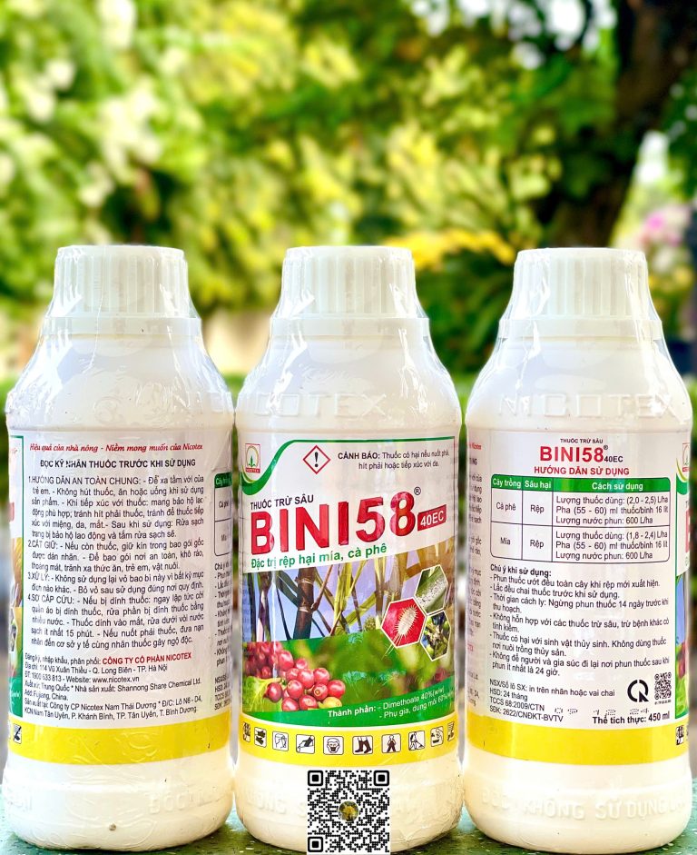 Bini 58 40EC là thuốc trừ sâu gốc lân hữu cơ có tác dụng tiếp xúc, vị độc. Sử dụng để diệt trừ hữu hiệu các loại rầy, rệp hại mía, cà phê và nhện đỏ hại cây có múi.