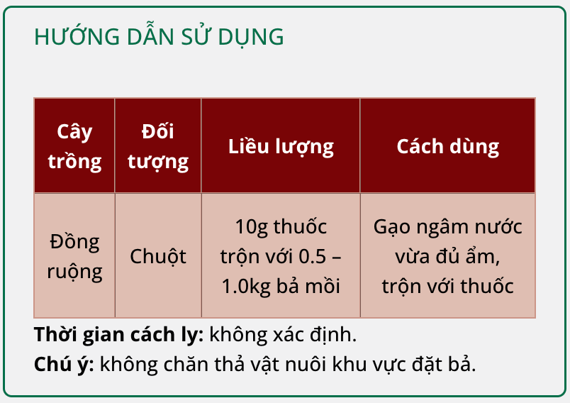 RAT K 2% DP – Là thuốc diệt chuột nhóm chống đông máu gây xuất huyết nội tạng. Chuột thường bị chết trong hang sau khi ăn bả 3 – 5 ngày nên tỉ lệ ăn mồi rất cao.