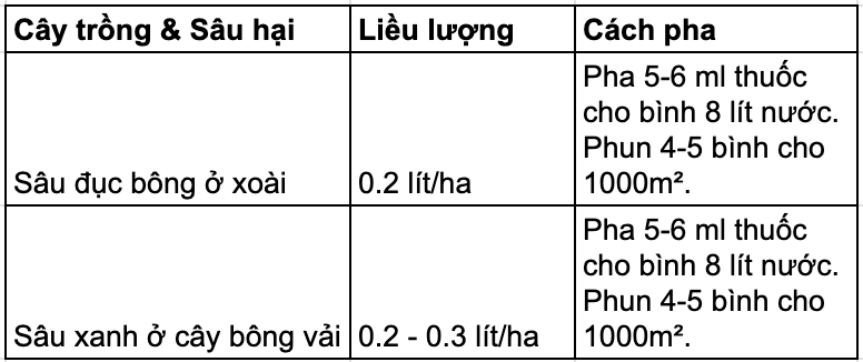 Thuốc đăng ký để trừ sâu xanh hại bông vải và rệp sáp hại cà phê