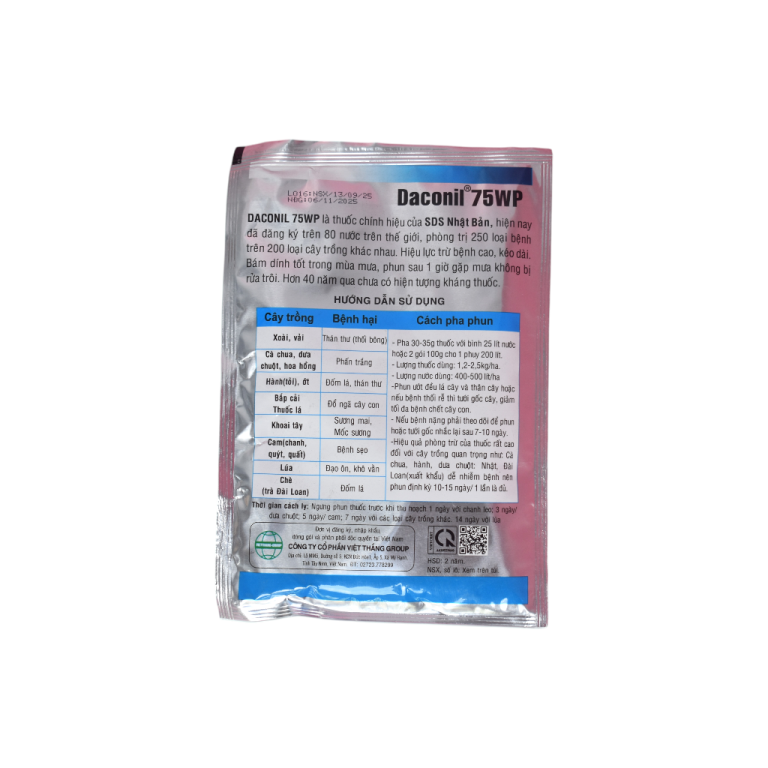 • Chất lượng Nhật Bản: Sản xuất bởi SDS Biotech K.K. — thương hiệu Daconil® uy tín hàng đầu thế giới trong lĩnh vực thuốc trừ bệnh.