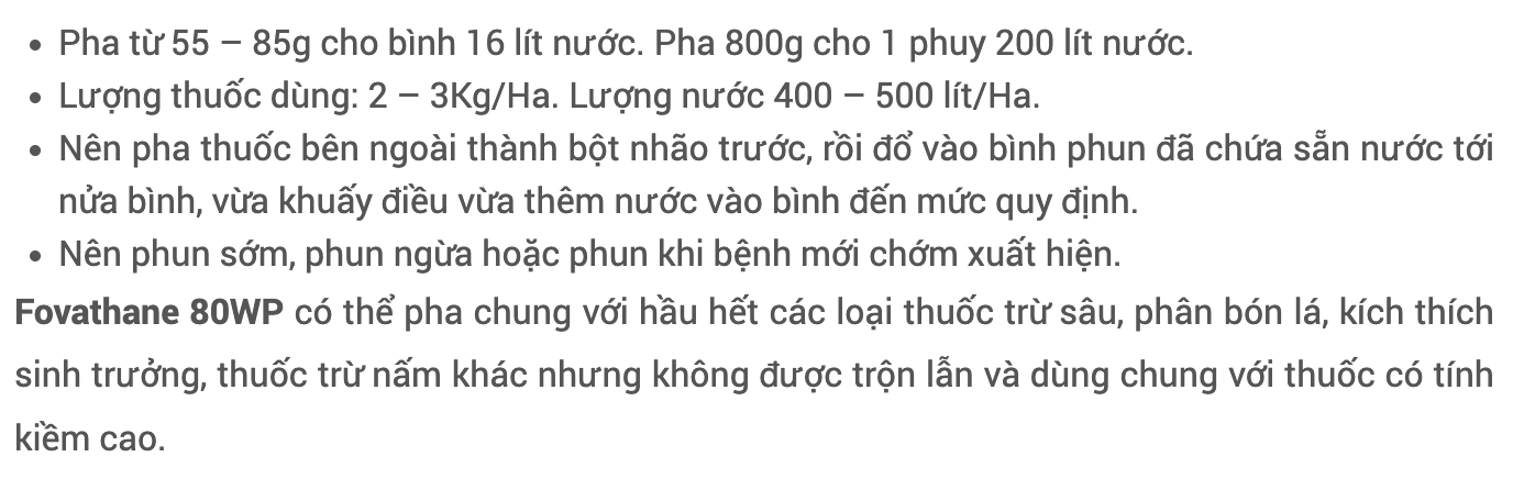 FORTHANE 80WP là thuốc nội hấp lưu dẫn cực mạnh đặc trị nhiều loại bệnh trên nhiều loại cây trồng khác nhau như: Bệnh đạo ôn hại lúa; Đốm lá hại đậu phộng, Nấm hồng, vàng rụng lá hại cao su; Rỉ sắt hại cà phê… HDSD :