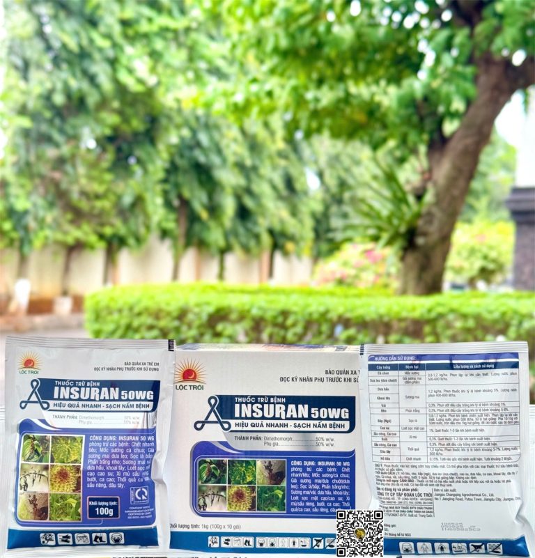 Insuran 50WG là thuốc trừ nấm phổ rộng, có tác dụng nội hấp, sử dụng trên nhiều loại cây trồng. Đặc trị các bệnh : phấn trắng, chết nhanh, xử lý hạt, sọc lá, giả sương mai, mốc sương, sương mai, loét sọc mặt cạo, xì mủ, thối quả trên nhiều loại cây.