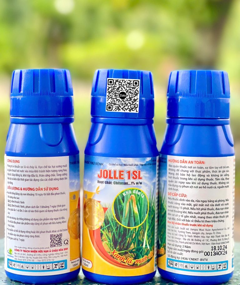 Công Dụng : – Phòng trị vi khuẩn sọc lá và cháy lá. Hạn chế tác hại sương muối và giảm thoát hơi nước vào mùa khô tránh hiện tượng rụng hoa,cây lá. – Giúp đứng lá, khô tóp đầu lá, thân cứng chắc. – Tăng cường hiệu lực và kéo dài thời gian tác dụng của các chất nông dược lên cây trồng. HDSD : – Sau khi trồng bằng cây non khoảng 10 ngày thì bắt đầu phun thuốc liều lượng như sau: Lần 1: 40ml thuốc/ bình Lần 2: 20ml thuốc/ bình • Phun cách lần 1 khoảng 7 ngày (thời gian phun giữa lần 1 và lần 2 căn cứ vào thói quen sử dụng thuốc của nông dân) – Đối với những cây trồng không sử dụng sản phẩm này ngay từ đầu thì với lần đầu phun sản phẩm này cũng sẽ phun với liều lượng 40ml • Sản phẩm có thể sử dụng riêng hoặc khi phun thuốc khác có thể thêm sản phẩm này vào phun cùng cũng được. • Thời gian cách ly : 7 ngày