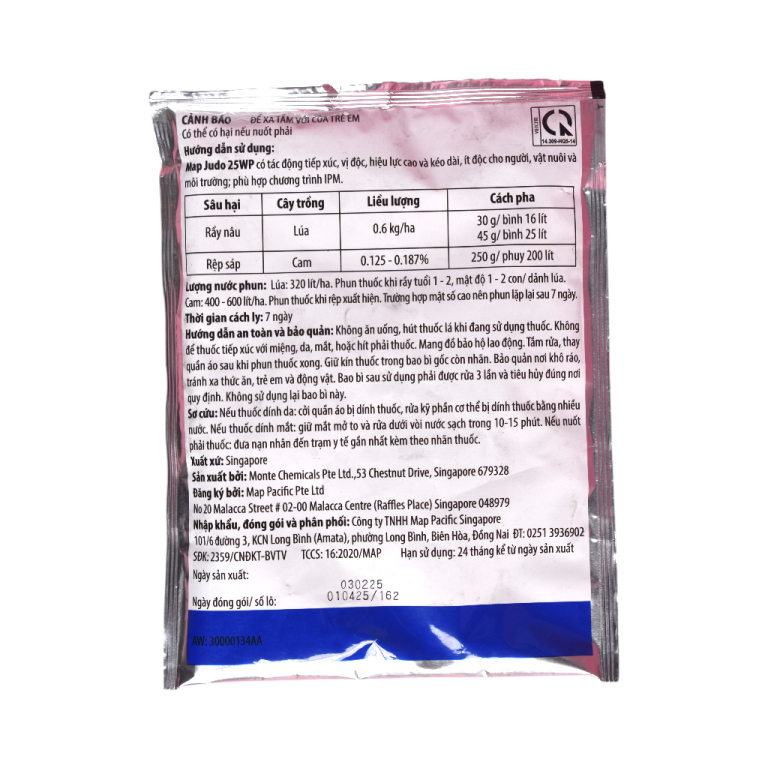 • Nên luân phiên Map-Judo 25WP với các nhóm thuốc có cơ chế tác động khác nhau để hạn chế nguy cơ hình thành tính kháng thuốc trong quần thể sâu hại.