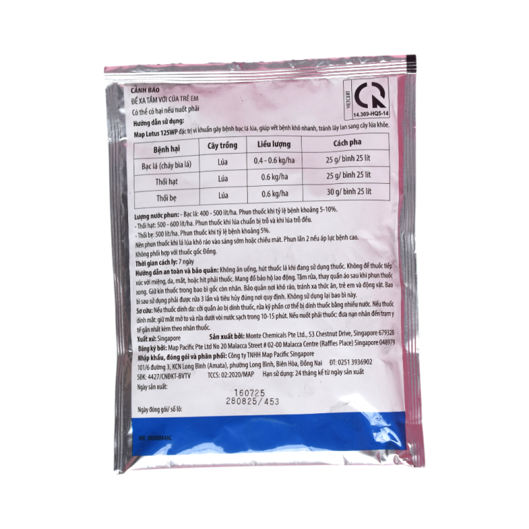 • Luân phiên sử dụng Map Lotus 125WP với các nhóm thuốc kháng khuẩn có cơ chế khác nhau để hạn chế nguy cơ kháng thuốc của vi khuẩn.