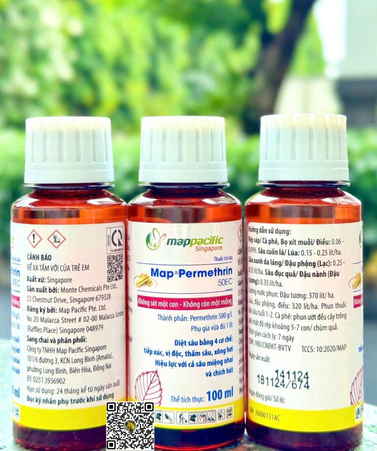 Map permethrin 50EC diệt sâu bằng 4 cơ chế: tiếp xúc , vị độc , thấm sâu , xông hơi