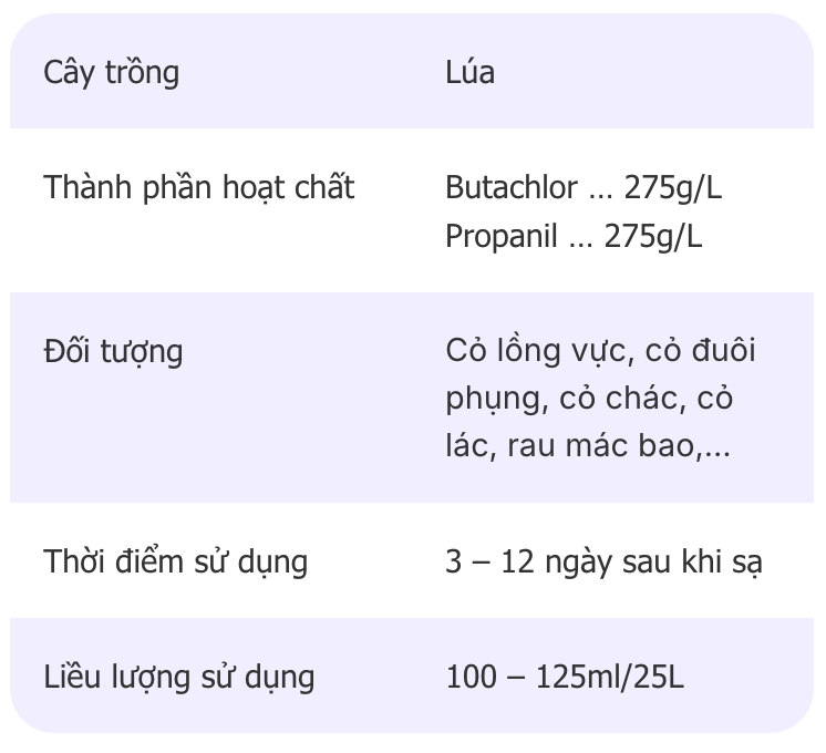MOTO TSC 550EC là thuốc trừ cỏ tiền nảy mầm và hậu nảy mầm sớm diệt trừ các loại cỏ có trong ruộng lúa như cỏ gạo, cỏ đuôi phụng, cỏ chác, cỏ lác, cỏ lồng vực, rau mác bao,… Thuốc diệt trừ cỏ từ lúc cỏ mới mọc đến khi cỏ 3 lá, Hiệu quả cao và an toàn cho lúa.