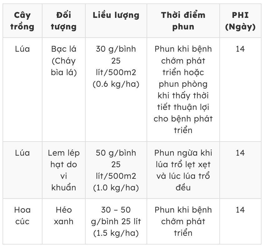 • Chuyên gia trừ bệnh cháy bìa lá và lép vàng trên lúa.