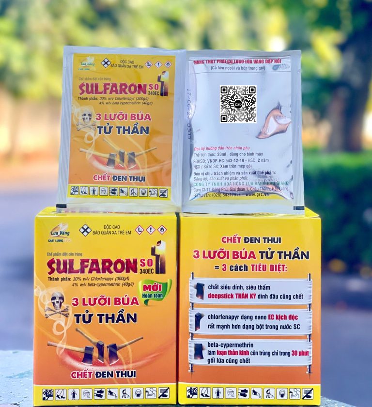 Sulfaron số 1 (lưỡi búa) có sự phối hợp 2 hoạt chất có phổ tác dụng rộng này làm gia tăng độc tính rất mạnh trên nhiều loại côn trùng.
