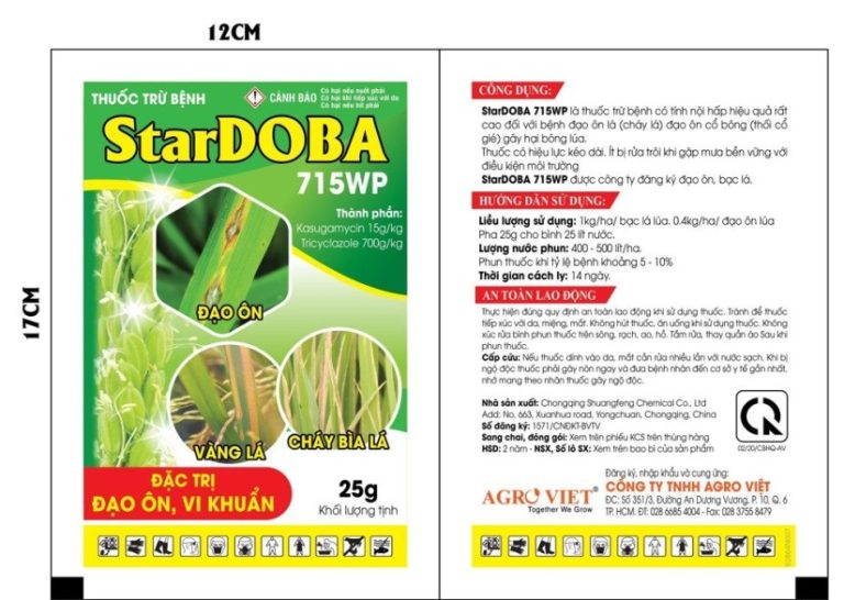 | Đạo ôn | 0.4 kg/ha | Phun thuốc khi tỷ lệ bệnh khoảng 5–10%. Lượng nước phun 400–500 lít/ha |