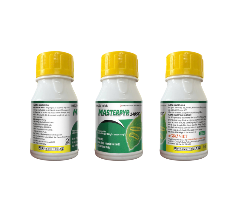 MASTERPYR 240SC là thuốc trừ sâu cao cấp, sử dụng hoạt chất Chlorfenapyr nhập khẩu tiên tiến, có hiệu lực mạnh trên nhiều loại sâu hại khó trị. Thuốc có cơ chế lưu dẫn – xông hơi – vị độc, giúp tiêu diệt sâu nhanh, giảm nguy cơ tái phát, phù hợp cho các vùng trồng cần xử lý sâu khoang và sâu kháng thuốc.