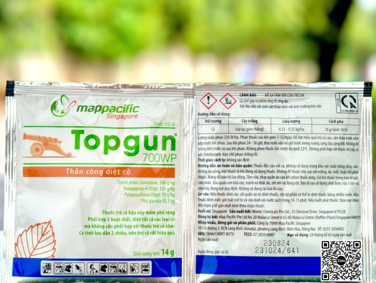Topgun 700WP là thuốc trừ cỏ hậu nảy mầm phổ rộng, phối hợp 3 hoạt chất, diệt tất cả các loại cỏ mà không cần phối hợp với thuốc trừ cỏ khác, có tính lưu dẫn 2 chiều, nên trừ cỏ rất hiệu quả.
