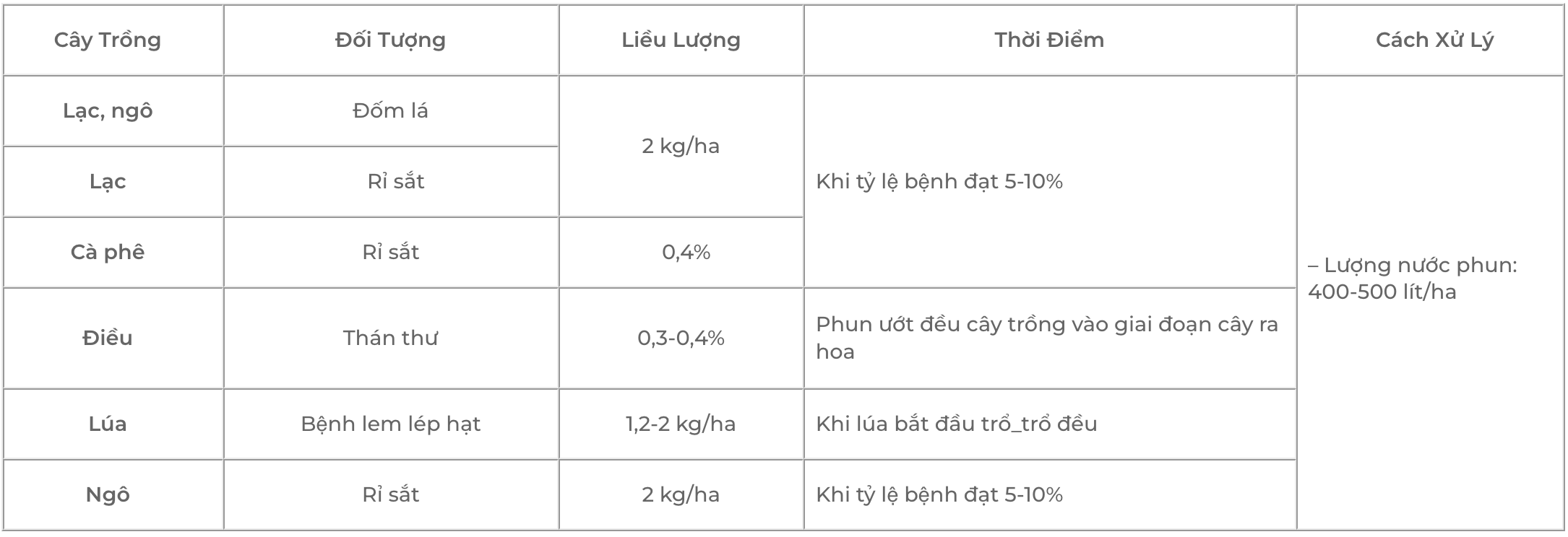 Ngoài khả năng trừ bệnh, Thuốc còn cung cấp nguyên tố vi lượng Zn và Mn cho cây trồng.