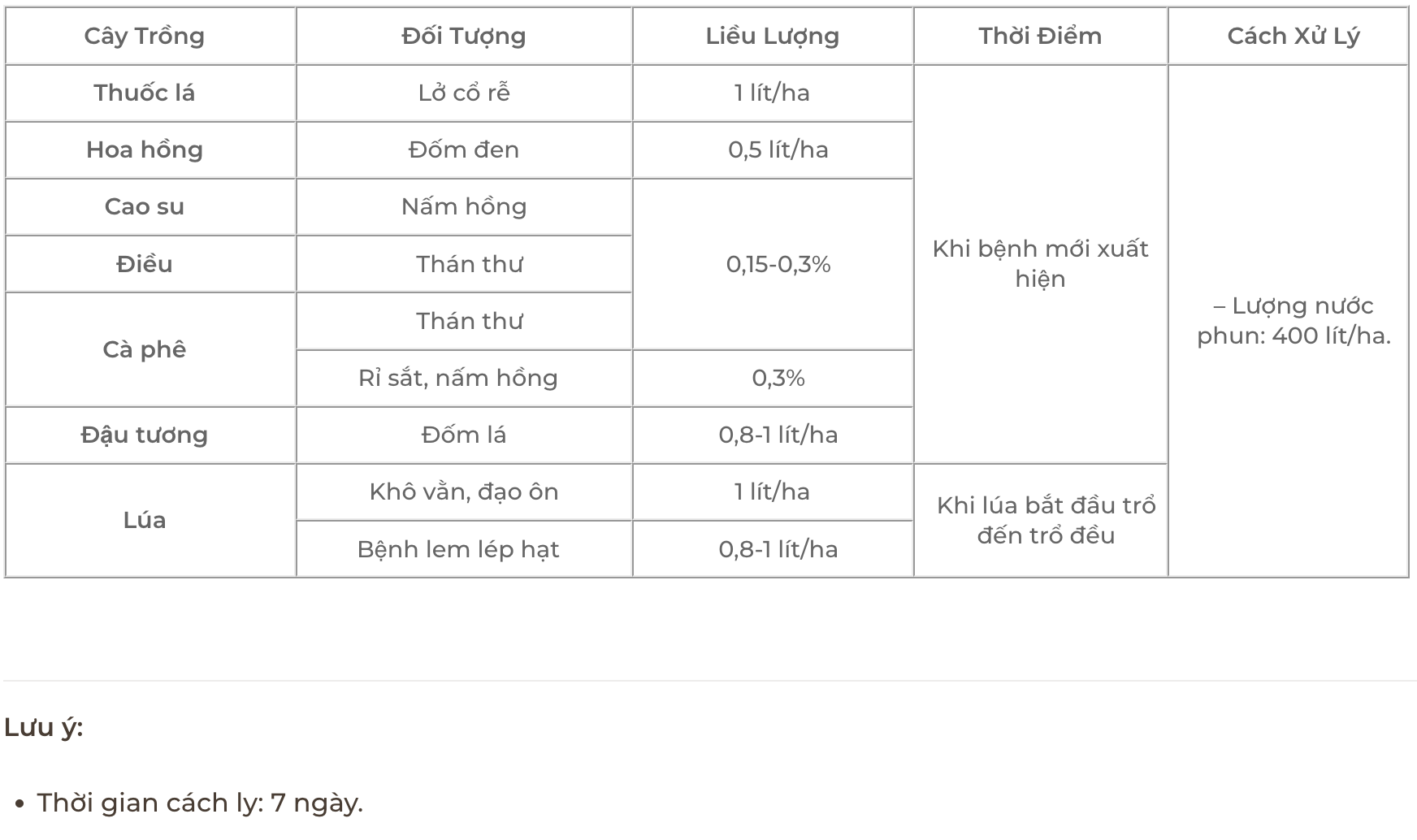 • Hoạt chất hexaconazole được mô cây hấp thu nhanh, chuyển vị và lưu dẫn mạnh nên kiểm soát nấm bệnh nhanh chóng, hiệu quả và kéo dài.