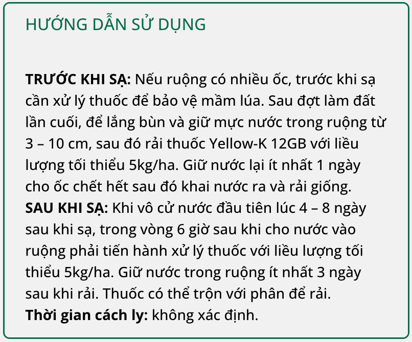 YELLOW-K 12GB – Diệt Ốc rất nhanh qua hai tác động tiếp xúc và vị độc.