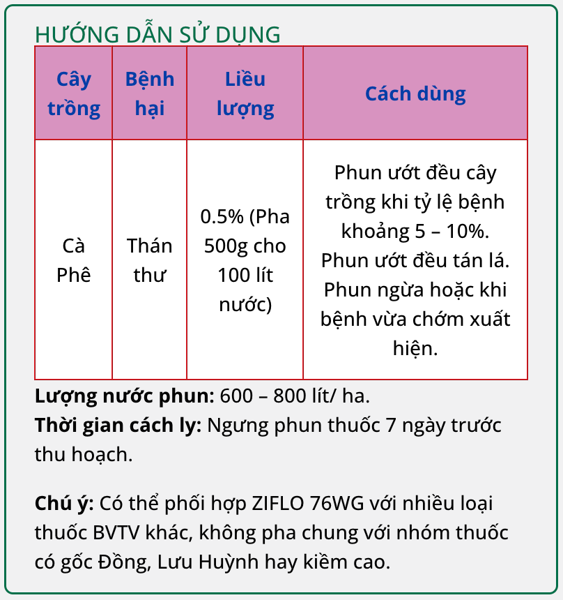 ZIFLO 76WG – Là thuốc trừ bệnh cây trồng, đặc trị thán thư trên Cà phê.